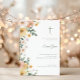 Une invitation de baptême florale intemporelle avec un doux aspect aquarelle et un design de croix épuré, parfait pour une célébration belle et significative.
