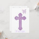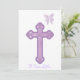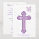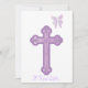 Invitation de baptême d'une nouvelle vie ! Une transformation spirituelle céleste. La croix violette de Jésus prend la tête de la sainteté de l'occasion. Un papillon violet symbolisant la transformation de l'âme. Personnalisez pour une entrée dorée dans cet événement spécial. Personnaliser.