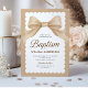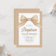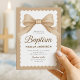 Célébrez l'événement sacré du baptême de votre enfant avec cette invitation élégante ornée d'un nœud beige et d'une croix. Les tons neutres et doux créent une atmosphère sereine pour votre occasion spéciale. Parfaite pour ceux qui recherchent un design classique et sophistiqué pour commémorer cette étape importante.