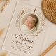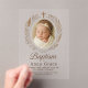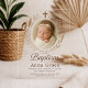 Cette élégante invitation de baptême en acrylique minimaliste présente un fond neutre doux, une photo de bébé centrée encadrée d'éléments botaniques délicats et un symbole de croix subtil au-dessus. Le look transparent ajoute une touche moderne et épurée—parfaite pour des célébrations sophistiquées et inspirées de la foi. Personnalisez avec le nom de votre bébé, les détails de l'événement et la réponse RSVP.