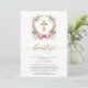 Invitation de baptême en rose et doré. Invitation moderne et élégante de baptême espagnol en or et rose. Ce design moderne et élégant présente une belle couronne florale dorée et rose ornée d'un délicat nœud et d'une croix dorée à l'intérieur. Le mot "bautizo" est écrit de manière élégante en lettrage doré manuscrit, ajoutant une touche de sophistication. Les détails de la célébration sont mis en évidence dans un lettrage tendance en majuscules sur un fond blanc croquant. Parfaite pour annoncer le baptême de votre enfant avec style et grâce, cette invitation combine joliment des éléments contemporains avec un charme intemporel.