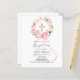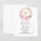 Un fond blanc élégant, orné de fleurs roses et blanches peintes à l'aquarelle en forme de couronne, un ruban rose et une croix dorée. Personnalisez et ajoutez un nom et des détails.