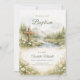 Cette élégante invitation de baptême à l'aquarelle présente un paysage naturel paisible avec une croix en bois, des colombes blanches, une rivière coulante et des fleurs sauvages. Inspiré par la beauté de la foi et de la création de Dieu, ce design crée une façon sereine et significative d'inviter ses proches à célébrer un baptême spécial. Parfait pour les baptêmes de garçons, de filles ou neutres, les tons neutres et la typographie de script classique créent une invitation-souvenir intemporelle pour cette occasion sacrée.