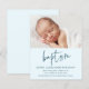 Cette invitation de baptême de bébé de style moderne comprend un art de baptême en écriture calligraphiée manuscrite qui est mobile et dont vous pouvez facilement changer la couleur, une photo horizontale et un texte modifiable. Cliquez sur le bouton modifier pour personnaliser ce design.