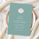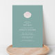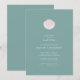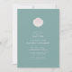 Conception d'invitation de baptême élégante avec une coquille rose et blanche peinte à la main sur un fond vert sauge qui crée une atmosphère côtière intemporelle - parfaite pour les baptêmes modernes, minimalistes et inspirés de la mer. La coquille représente un ancien symbole de baptême utilisé pour verser l'eau.