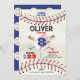 Invitation d'anniversaire de baseball, invitation d'anniversaire de recrue de l'année, jeu de balle de frappeur de sport. Fête d'anniversaire de garçon. Bleu marine rouge.