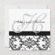Invitations de mariage élégantes que vous pouvez personnaliser avec des noms de monogrammes et de mariées et de mariées sur une conception de Damas noir et blanc par Elke Clarke ©2011. Ajoutez toutes vos informations mariages au verso de la carte en utilisant les invites de menu faciles à utiliser de Zazzle.