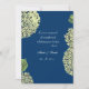 De belles têtes d'hydrangée fleuries sur un arrière - plan parfait de bleuets. Un motif chic et fantaisiste idéal pour les mariages, anniversaires et autres occasions. Vous pouvez le customiser selon vos besoins pour votre événement. Les cartes RSVP et d'autres produits sont disponibles dans ma boutique. D'autres modèles de couleurs sont disponibles sur demande.