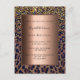 Elégante, cool, glamour et féminine pour une fête d'anniversaire de 50e (ou tout âge) avec motif léopard brun, doré et noir, décorée de confettis dorés. Un cadre en bronze métallique avec espace pour vos informations de fête. Retour : simple arrière - plan de carte postale. Cette carte est également disponible dans notre magasin sans une fausse couleur métallique bronze sur le dos. Conseil : Si vous ne voulez pas qu'il ressemble à une carte postale, cliquez sur customiser, allez à l'arrière et retirez le séparateur et le timbre postal.