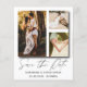 Annonce élégante et simple pour sauver notre date. Ce modèle comprend un espace pour 3 photos de vos couples préférés en blanc avec une calligraphie manuscrite cool en or. Facile à éditer avec vos propres détails uniques.