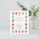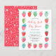 Une invitation tendance et douce avec des fraises peintes à la main en rouge et rose avec des accents de bleu et de vert.