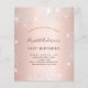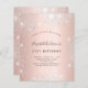 Une invitation moderne, élégante et glamour pour une fête d'anniversaire de 21 ans (ou tout âge). Un fond métallisé de faux rose or avec de la poussière de faux strass argentés. Le nom est écrit avec un style de lettre manuscrite grise moderne. Personnalisez et ajoutez les détails de votre fête.