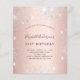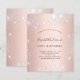 Une invitation moderne, élégante et glamour pour une fête d'anniversaire de 21 ans (ou tout âge). Un fond métallisé de faux rose or avec une poussière de faux strass argentés. Le nom est écrit avec un style de lettre manuscrite grise moderne. Personnalisez et ajoutez les détails de votre fête.