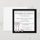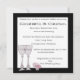 L'invitation au buffet cocktail présente une illustration fantaisiste de Donna Gotlib avec deux verres à vin et des fleurs roses dans un petit verre. Il y a une large bordure noire qui entoure l'invitation qui est d'un blanc croquant. La police de caractères est un design d'impression calligraphique amusant et fantaisiste.