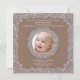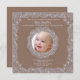 Cette invitation à l'arrière - plan au chocolat au lait a une dentelle dainty bordure et une fenêtre photo du centre de dentelle. Présenté ici comme une invitation au baptême, il est bien adapté pour la plupart des occasions. La carte est facile à customiser avec votre libellé, police, couleur de police et choix de six types de papier. Pas exactement ce que vous cherchez ? Tous nos produits peuvent être conçus sur mesure pour répondre à vos besoins sans frais supplémentaires. Il suffit de nous contacter à l'adresse askcottonlamb@gmail.com Produits de coordination disponibles : Carte de remerciements photo circulaire dentelle, Carte de remerciements monogramme dentelle