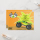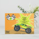 Cette invitation de camion de monstre est sûre au wow tous vos invités invités. Des couleurs lumineuses de l'orange et du vert sont appareillées avec des bruns de nature et des drapeaux noirs et blancs de course de contrôleur. Le camion est vert avec l'orange pour jaunir détailler de flamme. Il est facile customiser la carte avec vos mots, police, couleur de police et choix de six types de papier.