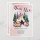 Une charmante invitation de camping à l'aquarelle avec une tente tipis bohème entourée de pins et de fleurs épanouies. Parfaite pour les fêtes en plein air, les mariages en forêt, les baby showers ou toute célébration inspirée de la nature. Cette illustration unique mélange des tons terreux doux avec des accents floraux, créant une atmosphère paisible et fantaisiste pour votre événement spécial.