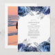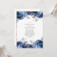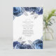Invitation de célébration de vie florale bleu marine et blanc avec feuille d'argent faux et typographie élégante.