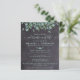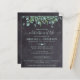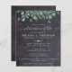 Invitation de funérailles / célébration de vie mémorial rustique. Ces invitations de condoléances funéraires présentent une élégante moderne verdure botanique d'eucalyptus sur un design d'ardoise de tableau noir rustique. Personnalisez cette invitation de funérailles de célébration de vie avec le nom et les dates de votre proche, les détails de l'événement. COPYRIGHT © 2021 Judy Burrows, Black Dog Art - Tous droits réservés. Invitation de célébration de vie rustique éucalyptus à petit budget