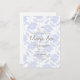Cette invitation de Première Sainte Communion présente un fond floral doux en bleu pastel avec une typographie élégante en or et serif. Le design est moderne tout en étant intemporel, combinant un motif délicat avec un script sophistiqué pour un look raffiné et gracieux.