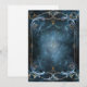 Un arrière-plan élégant et orné avec un cadre de carte bleu vide pour écrire dessus, entouré de motifs tourbillonnants et de dessins complexes dans des nuances de gris foncé et d'or clair, avec des touches subtiles d'énergie magique brillant subtilement dans le design. L'effet global est celui qui suggère le luxe ou la fantaisie.