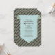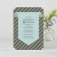Une bande bleue-verte et marron est la toile de fond d'un beau panneau qui maintient votre personnalisation. Une invitation branchée, parfaite pour votre célébration de confirmation. (FP)