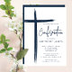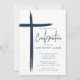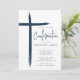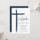 Cette invitation moderne à la confirmation bleue présente un design croisé élégant, parfait pour célébrer cette étape religieuse spéciale. Le code bleu marine le rend idéal pour la cérémonie de confirmation d'un jeune garçon. Le design simple et sophistiqué impressionne les clients et donne le ton pour un événement mémorable.