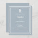 Arrière - plan bleu Dusty, décoré d'un cadre blanc, et d'une croix blanche Personnalisez et ajoutez le nom et les détails. Texte blanc. 1 feuille = 1 invite imprimé bord à bord.