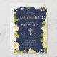 Cette jolie invitation à la confirmation moderne comporte une bordure florale illustrée et le mot "Confirmation" en or. L'arrière - plan est bleu marine, mais peut être customisé à n'importe quelle couleur que vous choisissiez. L'arrière de l'invitation comprend un motif en quatrefoil or avec un arrière - plan bleu assorti qui peut également être échangé. Le texte est personnalisable pour votre événement religieux spécial.