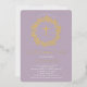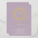 De belles invitations de confirmation en feuille d'or doré présentant une délicate couronne florale et une croix sur un fond lavande. Retournez notre invitation pour voir un dos coordonné pour un toucher supplémentaire spécial. Visitez notre boutique pour voir notre collection religieuse complète.