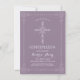 Cette invitation de confirmation élégante et classique de 4,5 po x 6,25 po comporte une croix blanche dessinée avec une bordure détaillée correspondante. L'exemple est illustré en violet, mais la couleur arrière - plan peut être customisée à votre goût. Parfait pour votre occasion religieuse spéciale, le texte peut également être personnalisé pour votre événement.