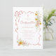 Célébrez son jour spécial avec cette élégante invitation de Confirmation florale rose. Caractérisée par de délicates fleurs printanières peintes à l'aquarelle dans des tons de rose pâle et de jaune doré, des accents de ruban fluides et un détail de croix minimaliste, ce design est à la fois féminin et intemporel. Parfait pour honorer la Confirmation de votre fille, l'arrangement botanique doux et la typographie scripturale élégante créent un souvenir raffiné et empreint de foi que les invités chériront. Personnalisez facilement avec les détails de votre événement pour une belle célébration printanière à l'église.