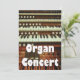 Vous pratiquez dur, ainsi vous avez besoin de l'abondance des personnes pour venir à votre concert pour entendre les résultats ! Écartez le mot à autant de personnes en tant que possible avec ces derniers les cartes pré-conçues. L'espace de modèle est déjà là pour des détails au sujet de l'interprète, morceaux étant joués, plus le de la plus haute importance, où, quand, et combien coûte le droit d'entrée. Mais ces invitations sont toutes personnalisables, ainsi vous devez écrire dans votre propre nom et détaillez etc. où il a été soigneusement préparé pour vous faciles et loin, bien plus vite que le faisant tout dès le début par vous-même ! Une photo d'une console d'organe et les pédales sont à l'arrière-plan. Le concert d'organe de mots sont recouverts dans le blanc.