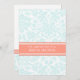 Invitations nuptiales de douche dans le bleu de ciel en pastel léger élégant de turquoise, rose de pêche et blanc motif floral vintage classique orange de damassé, chic et féminin, personnalisable avec vos détails de douche. Également disponible merci dedans des cartes et des invitations de la partie nuptiale.