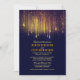 Marine et faire-part de mariage d'or visualisant de petits confettis en feuille d'or et de petites lampes à cordes suspendues au plafond. Le design de ce faire-part de mariage est éblouissant et regorge de lumières rêveuses, d'étincelles et de glamour. Etre chic et sophistiqué parfait pour le thème mariage vintage mais moderne... pour le mariage avec des lampes à cordes, pour la mariée avec parties scintillant dorée et décoration de robe marine ou pour ceux avec cérémonie de mariage avec jetée de confettis d'or.