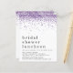 Parties scintillant violet Fête des mariées Invitation déjeuner. Un prix économique PETIT 4,5 po x 5,6 po alternatif. Disponible dans un STOCK CARTE SEMI GLOSS 110 lb qui est l'option par défaut (recommandé pour les invitations), OU un STOCK PAPIER THINNER SATIN FINISH 80 lb (idéal pour les boîtiers). Les enveloppes sont en option et légèrement plus grandes que la taille de la carte. Beaucoup d'espace blanc pour un style contemporain et une bordure de parties scintillant en faux violet de chaque côté pour un peu pétillant. L'en-tête de l'occasion est grand en minuscule élégant avec les détails en bas. Personnalisez facilement le texte à vos propres détails.