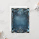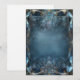 Un arrière-plan élégant et orné avec un cadre de carte bleu vide pour y écrire, entouré de motifs tourbillonnants et de dessins complexes dans des nuances de gris foncé et d'or clair, avec des indices subtils d'énergie magique brillant subtilement dans le design. L'effet global est celui qui suggère le luxe ou la fantaisie.