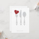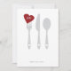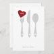 Célébrez votre dîner de répétition avec cette invitation "d'amour de portion". Argenterie avec le coeur rouge. L'espace pour écrire plus d'information sur le postérieur.