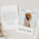 Célébrez une réussite capitale avec une invitation à la remise de diplômes élégante qui présente une image chère au sommet, capturant l'essence du parcours du diplômé. Sous la photo, le nom, l'école et l'année de remise des diplômes sont élégamment affichés, marquant cette étape importante. Le dos de l'invitation offre un espace suffisant pour un message personnalisé, vous permettant de partager des félicitations et des voeux sincères. En outre, les détails de l'invitation de la partie sont présentés dans un texte simple et moderne, assurant que toutes les informations essentielles sont claires et faciles à lire. Cette invitation bien pensée allie touches personnelles et élégance contemporaine, préparant le terrain pour une célébration mémorable.
