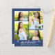 Soyez fiers, réjouissez-vous et mettez en valeur cette étape importante de votre diplômé préféré ! Envoyez cette invitation de déclaration de budget de collage de 4 photos personnalisée, girly, époustouflante, simple et moderne pour un événement inoubliable. Un visuel amusant et ludique avec une écriture manuscrite blanche et des cœurs mignons et ludiques, ainsi que son nom, son année de promotion et son école, et 4 photos de votre choix se superposent sur un fond bleu marine. Personnalisez le texte personnalisé avec le nom de votre diplômé, son école et son année de promotion sur le devant. Au dos, ajoutez votre note personnelle, la prochaine école qu'elle fréquentera, les informations sur la fête, etc. sur le fond bleu. Garantit d'ajouter une touche de style amusant à leur occasion spéciale !