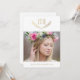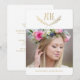 Célébrez le diplômé avec des annonces de remise de diplômes modernes et magnifiques et des invitations à des fêtes !Toutes les photographies sont affichées sous forme d'échantillon seulement et ne sont pas destinées à la revente. Ce produit est destiné à être acheté seulement une fois que les photos d'échantillons sont remplacées par vos propres images.Veuillez noter : Cette conception comporte des éléments qui sont censés ressembler à de la feuille d'or, mais aucun papier ne sera imprimé sur cette carte.