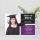 Commencez votre fête dès maintenant avec cette invitation. Il a une moitié en haut noir sur le côté droit avec un fond violet, il est encadré dans une bordure blanche. Cet invitation est parfait pour un baccalauréat, un collège, ou même un diplôme d'études secondaires. Ajoutez simplement votre photo et personnalisez-la avec les informations de la fête et vous êtes prêt à partir. Découvrez nos nombreux autres designs et couleurs dans notre magasin.