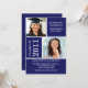 Commencez votre évènement avec notre prestigieuse invitation / faire-part de graduation photo bleu foncé & blanc. Une invitation parfaite pour obtenir un diplôme d'études secondaires ou collégiales. Remplissez simplement vos informations, ajoutez votre photo et vous êtes tous prêts à partir. Visitez notre boutique à www.celebrateitgraduations.com pour un large assortiment d'invitations à la remise de diplômes!