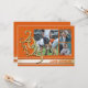 Annonce de graduation à triple photo à rayure universitaire or pour la promotion 2025 en orange et or.