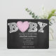 Baby Love Pink Heart Chalkboard Chevron Girl Invitation Baby shower.