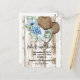 carte d'invitation de douche de mariée cowgirl avec motif floral bleu et accents marrons.