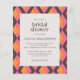 Célébrez la future mariée avec cette invitation de douche de mariée audacieuse et moderne, dotée d'un motif géométrique vibrant aux teintes orange, rose et marron. Le design élégant mélange l'esthétique rétro à l'élégance contemporaine, créant un arrière-plan accrocheur pour les détails de votre événement. Idéal pour les mariées qui aiment la papeterie unique et qui fait sensation. Parfait pour une réunion pré-mariage amusante et animée.