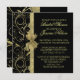 Invitation de douche noire en ruban or de luxe