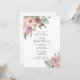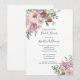 Belle invitation à la douche nuptiale rose poussiéreuse avec roses, hydrangea, eucalyptus et autres verdure réalisés dans des peintures aquarelles. Jolie typographie ajoute au style. Voir aussi nos points de coordination.
