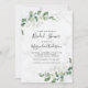 Des amis Invitations et la famille pour honorer la future mariée avec cette invitation abordable de douche nuptiale avec des feuilles d'eucalyptus aquarelle contre un arrière - plan en marbre.